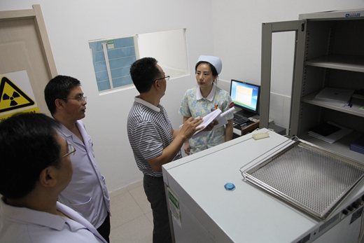 7月26日上午,在市卫计委调研员杨军、主任赵永平的陪同下,以常州市卫计委副主任姚福建为组长的省检查组一行六人前来我中心进行安全生产专项检查。