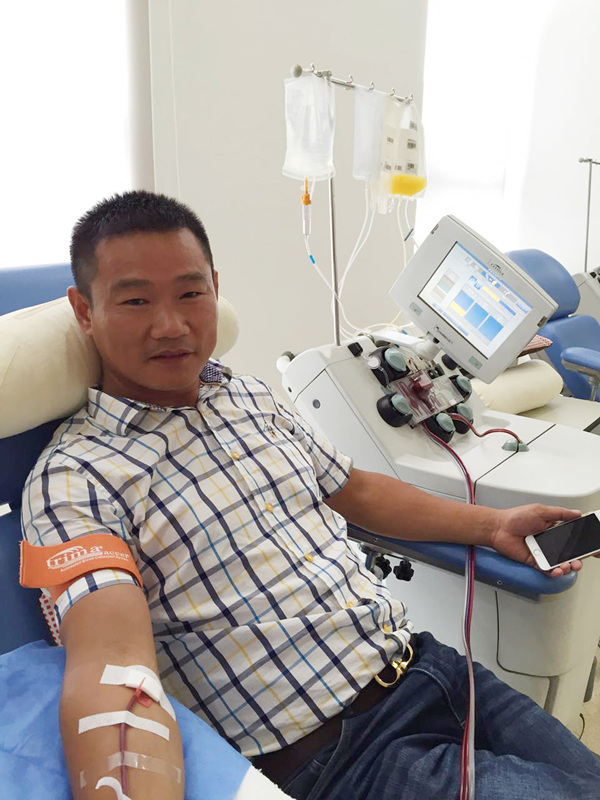 得知他救人心切,我建议他捐献单采成分血——血小板。血小板可以促进大出血的病人凝血功能的恢复,而且捐献全血到捐献血小板的间隔期只有三个月。听说可以献血救人,这位裴家平毫不犹豫地同意了。
