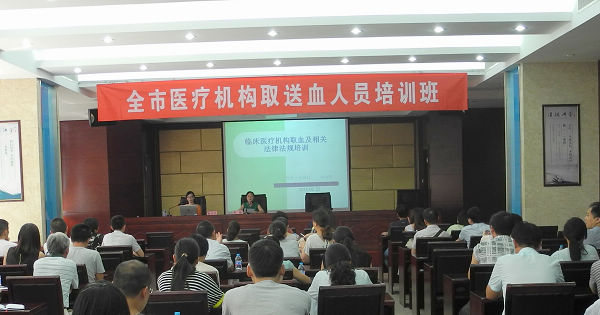 2016年8月23日下午,由张家港市红十字血站主办的全市医疗机构取送血人员培训班在市公卫中心会议室举行,全市各医疗单位检验科(血库)工作人员、取送血人员、其他管理、技术人员及血站工作人员共120多人参加培训。培训班由市血站副站长周敏主持。
