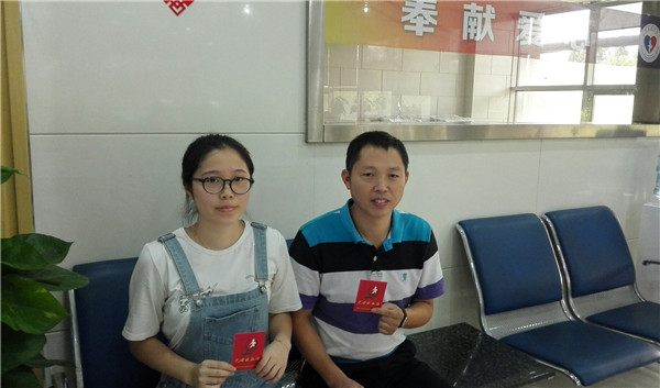 女儿周雨婷,今年刚参加完高考,过几天就要成为中国传媒大学南广学院的一名新生。她在父亲的影响下,很早就想献血,但因年龄不符合献血条件,一直不能捐献。终于等到自己18周岁生日这天,她跟爸爸一起,用捐献血小板的方式庆祝生日,将光荣的“无偿献血证”作为一份特殊的“成人礼”送给自己。当天,雨婷在体检过程中还遇到了一个小“插曲”,由于早上吃了馄饨,血浆有点油,为了能够成功捐献,她按照工作人员的建议喝红茶水来尽快代谢油脂,等血浆澄清透明后再献。在喝了十几杯茶水,跑了多趟洗手间后,她忍着痛又抽了一针血,符合要求后这位勇敢的小姑娘终于完成了心愿,成功捐献了2个治疗量的机采血小板!让我们为这爱心满满的父女俩点100个赞!