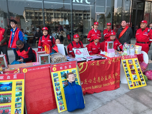 “淮海经济区献血第一人”、“中国好人”、“感动徐州十大杰出人物”——徐州市东方人民医院职工孔令喜带来了他1995年在北京人民大会堂展示的心愿旗,并上台发言呼吁市民热心公益,支持无偿献血。献血车上,我们看到血液中心医护工作人员正用他们灿烂的微笑和专业技能对待每一位前来献血的爱心人士,耐心指导献血者填写《献血登记表》,为现场群众答疑用血政策;也看到了一个个衣着整齐的志愿者们在积极发放宣传资料。我们不禁要为医护人员和服务者提供的优质服务鼓掌,更要为献血者的善举点赞。