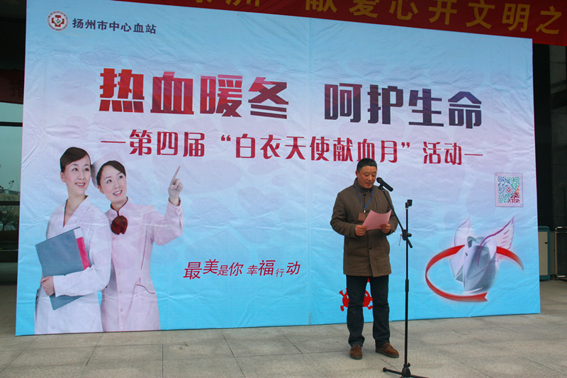 1月10日,以“热血暖冬,呵护生命”为主题的第四届“白衣天使献血月活动”在扬州市中心血站正式启动。