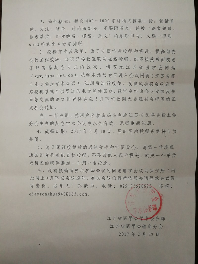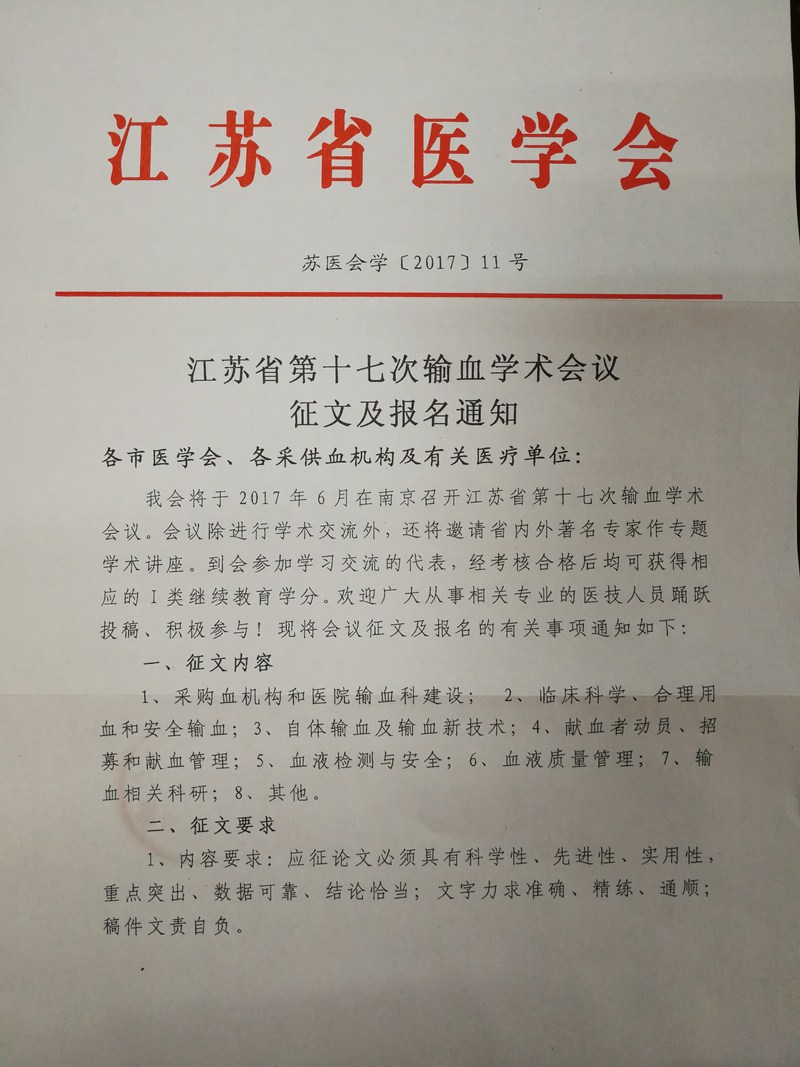 作者:-- 来源:江苏省输血协会 发布时间:2017-03-15 14:13 点击率:2249