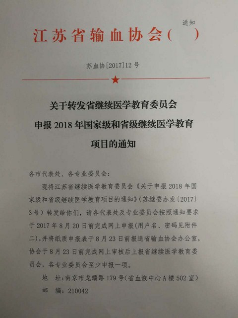 作者:-- 来源:江苏省输血协会 发布时间:2017-08-07 16:52 点击率:2313