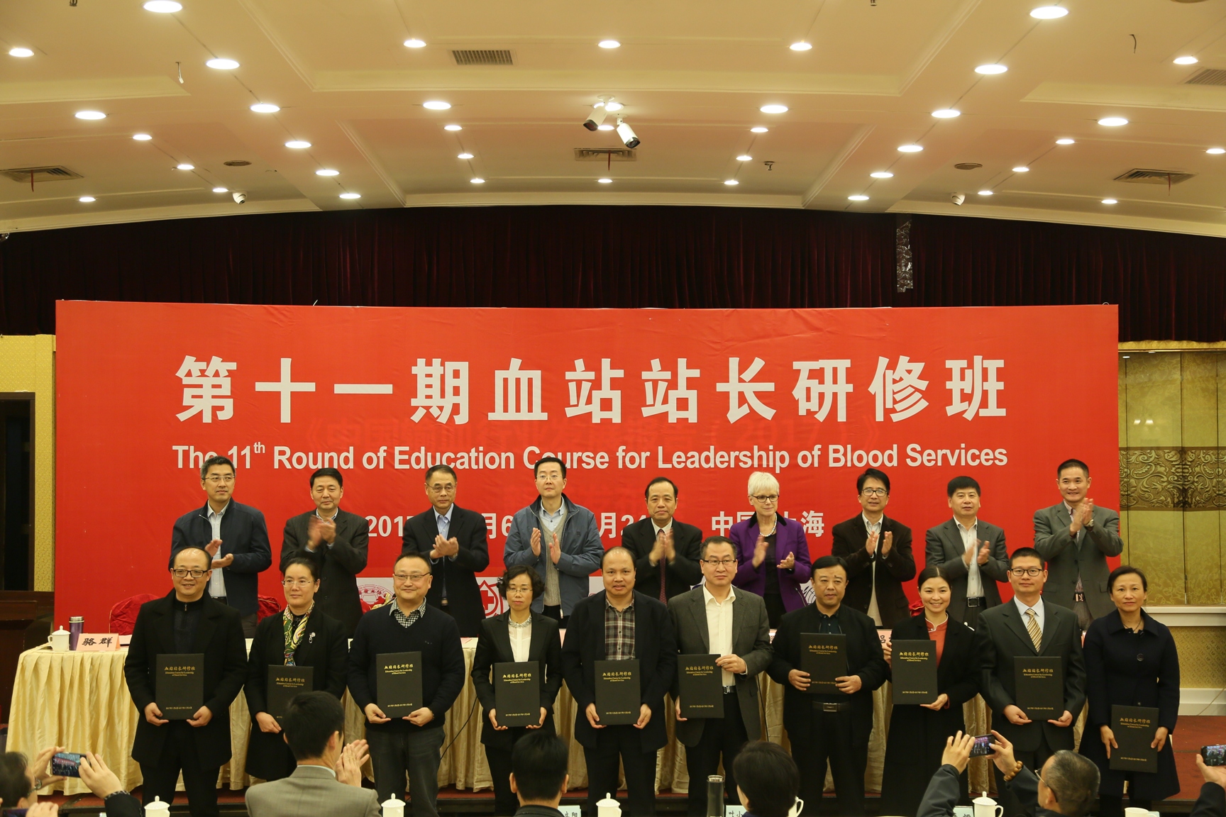 由中国输血协会、上海市血液中心、AABB、国际输血协会(ISBT)和世界卫生组织输血合作中心联合主办的第十一期《血站站长研修班》于2017年11月23日在上海圆满闭幕。上海市卫生和计划生育委员会医政医管处处长吴宏,世界卫生组织输血合作中心主任、中国输血协会理事长朱永明,国际输血协会(ISBT)执行董事Judith Chapman,上海市血液中心主任陆韬宏,2017-2018年度研修班管理委员会主任委员钱开诚出席闭幕式。历届研修班班长应邀参加闭幕式,他们是:第二期血站站长研修班班长、浙江省医学科学院院长、原浙江省血液中心主任、原浙江省输血协会理事长吕杭军,第五期血站站长研修班班长、江苏省血液中心主任、江苏省输血协会理事长孙俊,第九期血站站长研修班班长、吉林省血液中心主任王相荣,第十期血站站长研修班班长、重庆市血液中心纪委书记钟吉元。