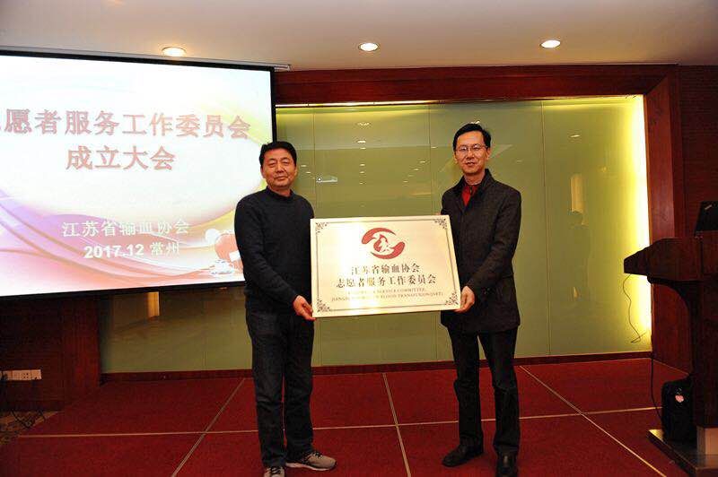 会上,省输血协会黄成垠秘书长宣读成立专业委员会的决定,省输血协会孙俊理事长分别向张建伟(曹锁春代)颁发主委聘书,向蔡丽娜、王婷颁发副主委聘书。徐立副站长代表常州市中心血站接受依托单位铜牌。随后由常州市卫生计生委刘志洪副主任以及常州市血站曹锁春副站长发表讲话,两位领导介绍了近年来常州市无偿献血的发展现况以及志愿者服务工作的重要性,同时展望了志愿者服务工作委员会的成立之后的工作开展。会上省输血协会孙俊理事长也做了重要讲话,他指出志愿者服务的重要性,并举例在省血液中心今年夏季流动点采血的过程中,志愿者吃苦耐劳,尽心尽责,发挥了很大的作用。成立志愿者工作委员会可以促进志愿者服务广泛交流,帮助大家积累经验,将志愿者管理做的更好。
