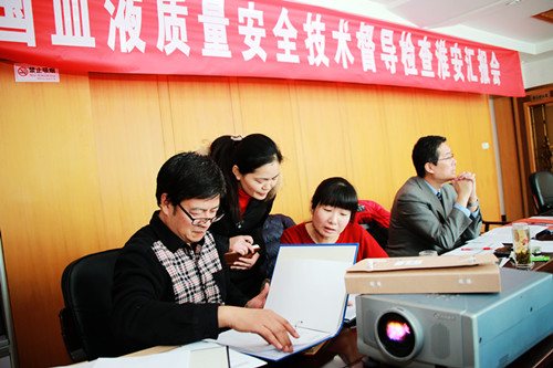 在核查汇报会上,核查组组长李志强主任首先就此次核查的目的、内容、要求和纪律等作了说明。市卫计委副主任俞伟男就淮安市血液安全概况、献血招募、应急供应保障、采供血服务能力以及血液安全管理、等方面作了简要汇报。随后,督导组一行深入血站各业务场所和安全重点部门,采取听汇报、看资料、查现场的形式,对照核查标准对我市千人口献血率、采供血应急预案、血液核酸检测、互助献血管理、献血者屏蔽机制、血液质量监控、献血不良反应、差错处理和医疗废弃物管理等工作进行了全面严格的检查。各科室负责人及职工积极配合,对专家们提出的意见与建议进行详细记录。
